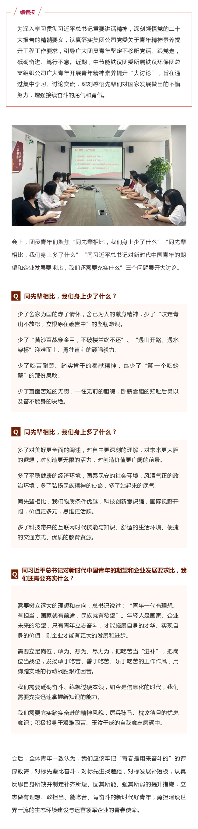 聚焦二十大 | 中節能鐵漢開展青年精神素養提升工程“大討論”