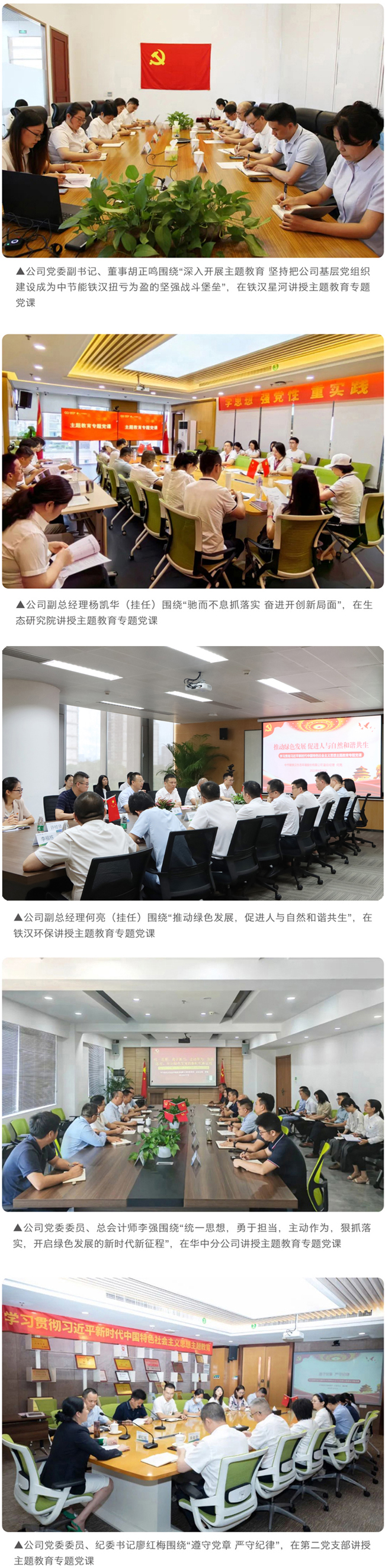主題教育期間,公司班子成員分別圍繞“基層黨組織建設”“科技創(chuàng)新”“推動綠色發(fā)展”“調(diào)查研究”“遵守黨章”“防范化解風險”等主題到分管單位講授了專題黨課。