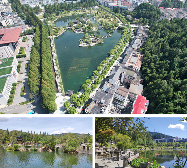 挹翠湖公園位于井岡山風景名勝區茨坪中心景區核心位置,被中心大道、紅軍路、南山路三條主路圍合。中節能鐵漢通過對挹翠湖公園景觀提升,形成山水相生、城景相滲、游客共享生態特色的核心綠色空間,推動紅色景區與生態公園滲透融合,為當地居民和游客營造四季皆有景可賞的精致山水畫卷。