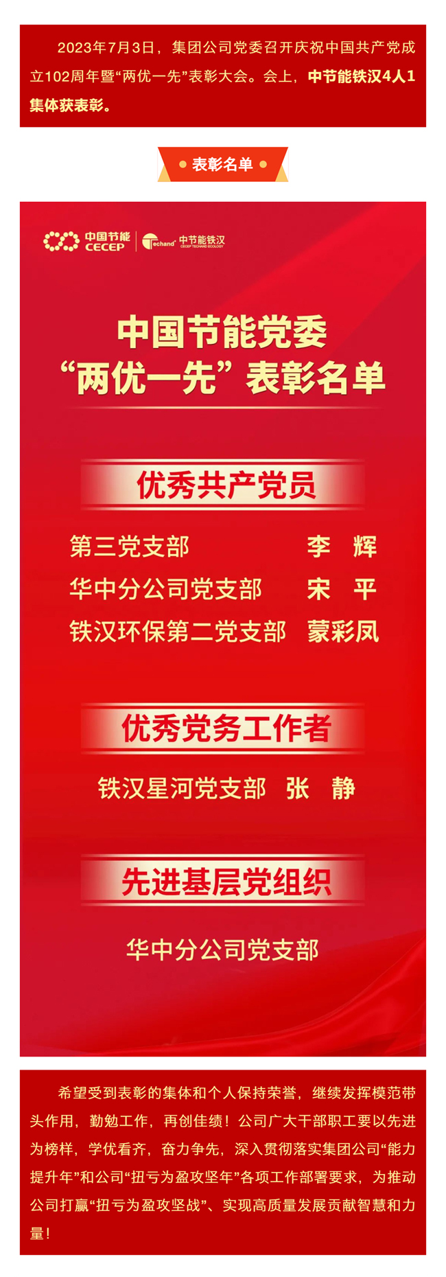 【喜報】“七一”表彰 | 中節能鐵漢4人1集體獲集團公司黨委表彰