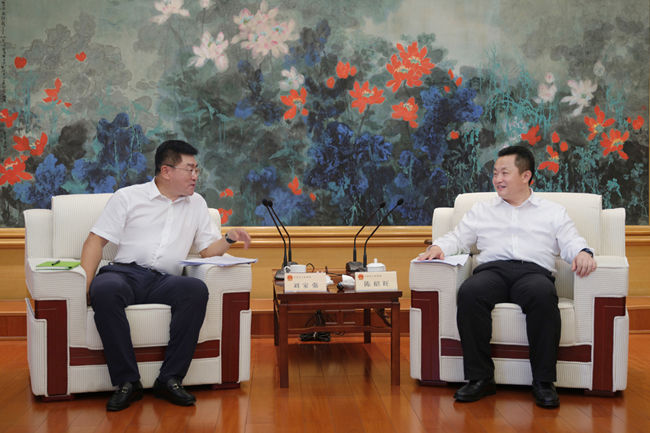 8月17日,集團公司黨委副書記、總經理,中節能鐵漢黨委書記、董事長劉家強在大連市拜會大連市委副書記、市長陳紹旺,雙方就進一步落實集團公司與遼寧省政府戰略合作框架協議,推進多領域務實合作進行了座談交流。