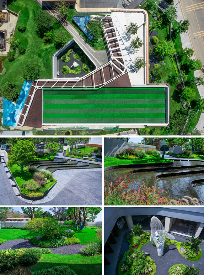 新安項目位于深圳市寶安區,旨在打造生態花園式居住環境,從入口到公共空間,自然氣息濃郁,現代元素富含其中。通過商業下沉和弧形線條的景觀設計,滿足人們休閑需求,為居住環境注入活力和動感。屋頂花園營造一個完整的園林生態系統,與周邊環境和城市天際線相融合。