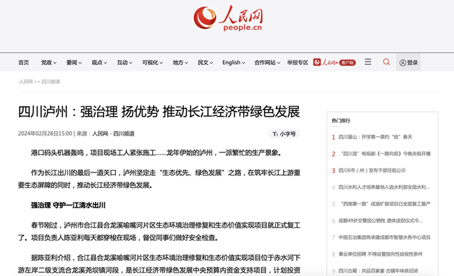 媒體聚焦|人民網報道中節能鐵漢四川瀘州合江縣項目建設
