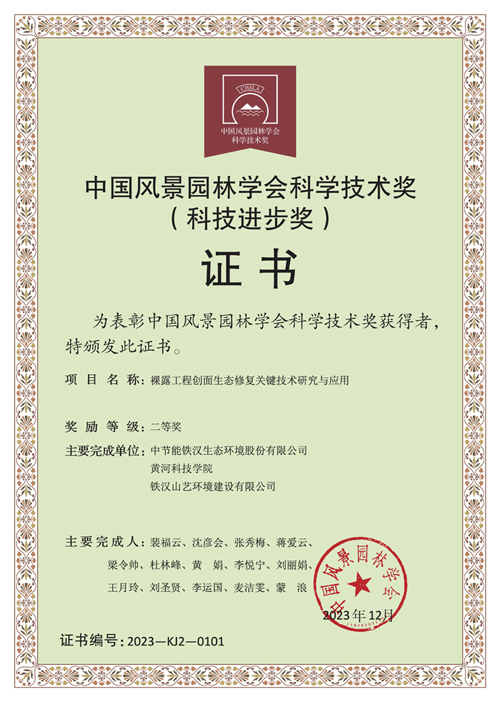 面對裸露工程創面,地表生態如何修復,中節能鐵漢的創新做法是——構建可持續的擬自然植被!日前,中國風景園林學會為“2023年度中國風景園林學會科學技術獎”獲獎單位頒發了榮譽證書,由中節能鐵漢申報的《裸露工程創面生態修復關鍵技術研究與應用》獲科技進步獎二等獎,為該類場景生態修復提供創新解決方案。該項目去年底還攬獲了2023年度廣東省勘察設計行業協會科學技術獎三等獎。