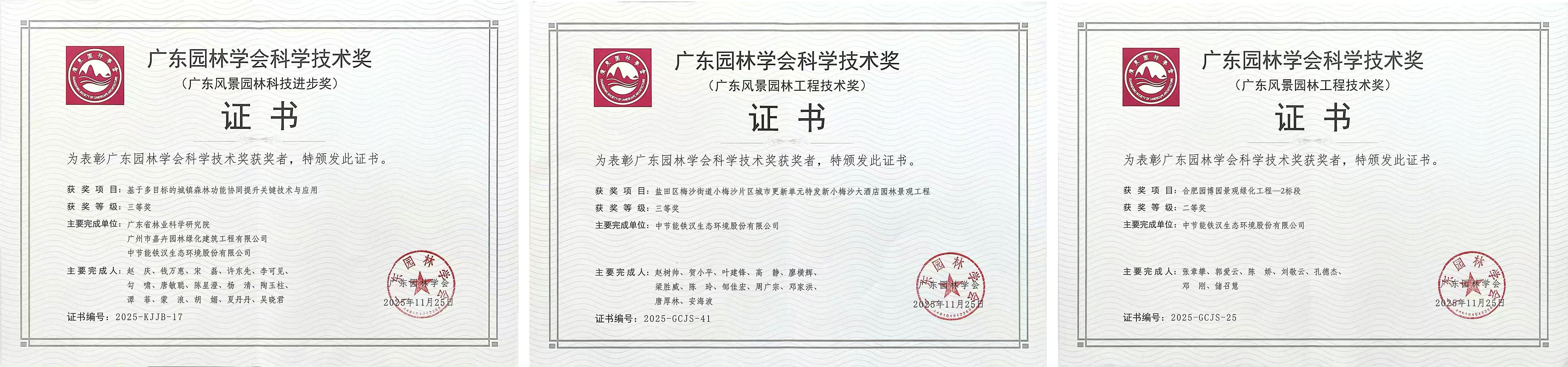 中節能鐵漢獲廣東省園林學會三項表彰